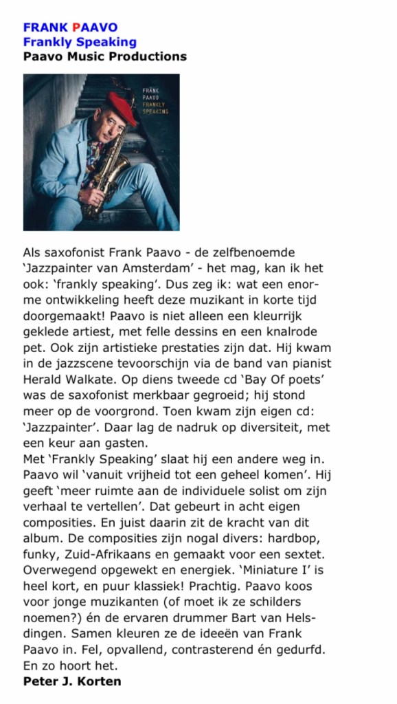 Vandaag kwam NR. 373 uit van Jazzflits . Daarin staat een mooie recensie door Peter J. Korten.