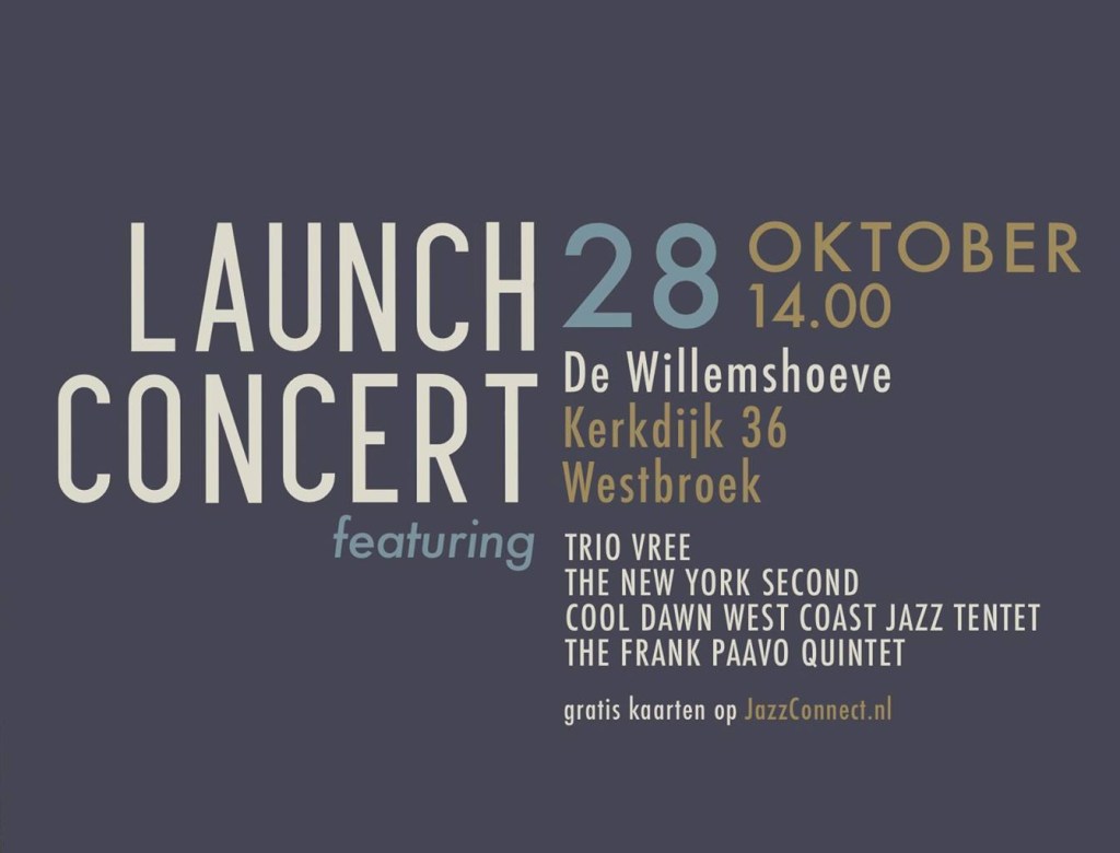 Trots presenteert JazzConnect het JazzConnect Launch Event! Een middag vol top-jazz door een 4-tal bijzondere bands die samen dit Nederlands collectief vormen. JazzConnect presenteert hoge kwaliteit toegankelijke jazz voor het grote publiek en kleine podium. Met hun verenigingsmodel wordt dit slim gerealiseerd door professionele muzikanten te koppelen aan sterke musici die tòch een andere carrière-weg…