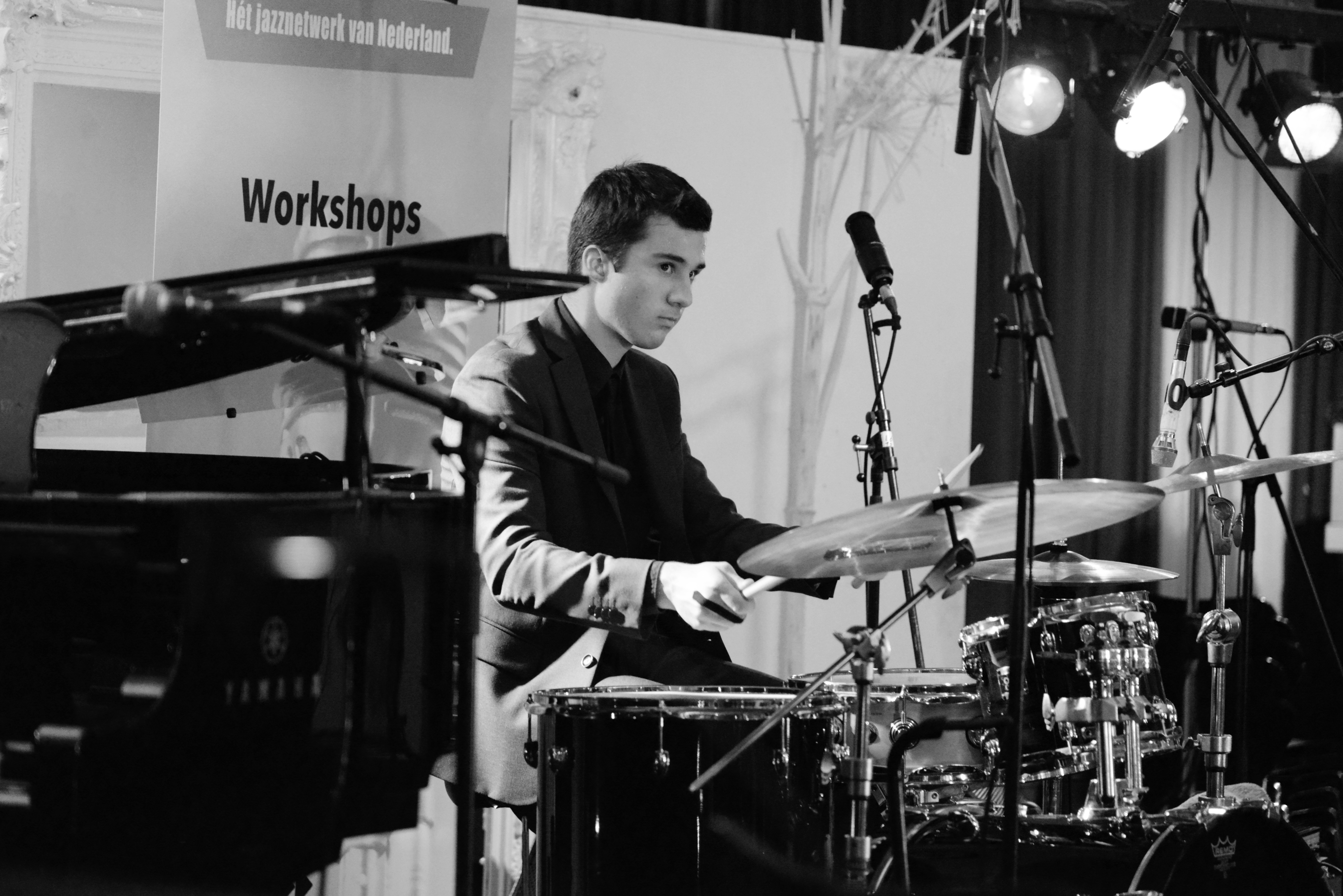 Foto’s van Frank Paavo, met onder andere Hermine Deurloo, Bart Lust, Hans Mantel, Richenel, Sanne Huijbregts en Sherwin Kirindongo, tijdens de opnames van Jazz Painter, in en rond de studio, en tijdens optredens in Concerto Amsterdam door Lucienne Kohler